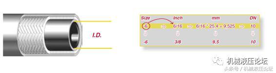 油管内径大小的表示方法,软管内径有两种表示方法,一种为尺寸(英文Size)以破折号加数字表示,数字表示内径英寸数对应的十六分之一的倍数,比如管内径为3/8’ 可以表示为-6。