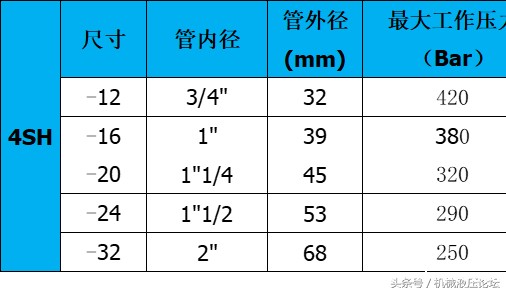 附:常用液压胶管内外径及最高工作压力参数