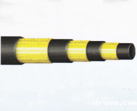 胶管由耐油的内胶层、三层钢丝编织增强层、耐天候的外胶层组成。