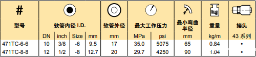 适用介质:石油基液压油,水乙二醇,润滑油,空气和水。用于1.7MPa以上的空气时,软管需针刺。