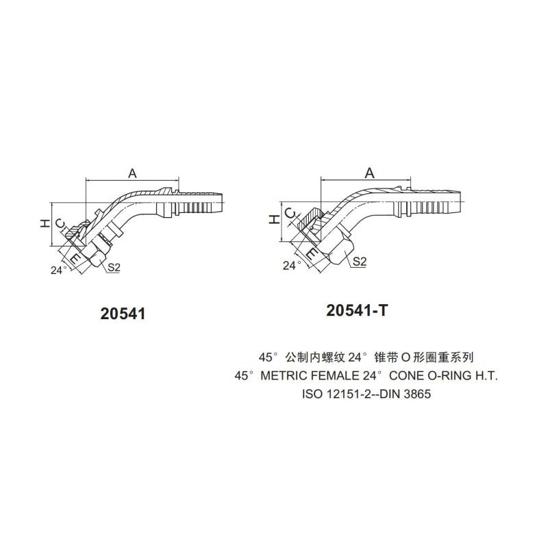 永华标准 扣压式接头 20541和20541-T 45°公制内螺纹 24°锥带O形圈重型系列 超高压油管重型接头 公制接头 总成接头 液压器材配件
